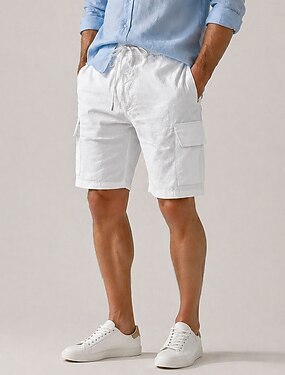 Hombre Pantalón Corto Cargo Pantalones cortos de lino Pantalones cortos de verano Pantalones cortos de playa Correa Cintura elástica Pierna recta Plano Comodidad Suave Longitud de la rodilla Diario