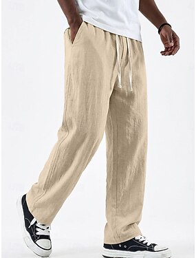 Hombre Pantalones de lino Pantalones Pantalones de verano Pantalones anchos Pantalones de playa Correa Cintura elástica Pierna recta Plano Comodidad Transpirable Longitud total Casual Diario Festivos