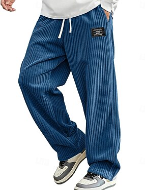 Hombre Pantalones Pantalones de Pana Pantalones de invierno Pantalones anchos Correa Cintura elástica Color sólido Comodidad Longitud total Diario Exterior Ropa de calle Moda Estilo clásico Holgado