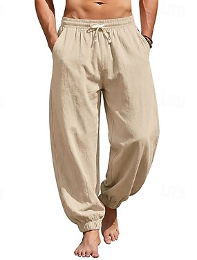 Hombre Pantalón Jogger Pantalones de lino Pantalones Pantalones de verano Pantalones anchos Correa Cintura elástica Plano Comodidad Transpirable Longitud total Casual Diario Festivos Vacaciones Moda
