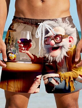 Hombre Personajes de Dibujos Gracioso Old Man Boxers de Natación Pantalones de Natación Pantalones de Surf Media cintura Retro Antiguo Exterior Vacaciones Uso Diario Bolsillos laterales Forro de
