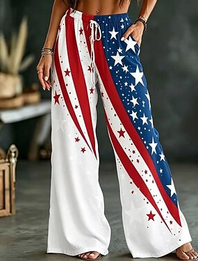 Mujer Perneras anchas Chinos Pantalones casuales Pantalones Vacaciones Moda Básico Longitud total Media cinturaPantsDía de la Independencia Americana Cachemir Bolsillo Cintura elástica Estampado