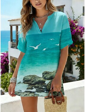 Mujer Vestido Midi Vestido bohemio Vestido de una línea Vestido de verano Vestido plisado Elegante Moda Moderno Casual Diario Exterior Holgado Plano Manga Corta Escote en Pico Azul Piscina Negro