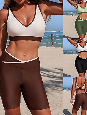 Mujer Traje de baño 2 Piezas Trajes de baño Color sólido Pierna breve Secado rápido Elástico Sin Mangas Bañadores Traje de baño Surf Playa Natación Verano