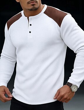Hombre Camisa henley gofrada Camiseta superior Manga Larga Henley Primavera & Otoño Todas las Temporadas Bloque de color Moda Design Básico Bloque de Color Vacaciones Calle Casual Negro Blanco Rojo