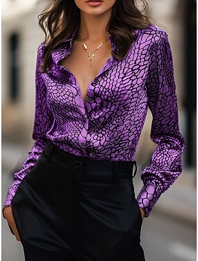 Mujer Camisas de trabajo Graphic Leopardo Elegante Casual Manga Larga Cuello Camisero Tops regulares Diario Trabajo Ropa de fiesta de noche Azul Piscina Rosa Morado Marrón Gris Verano Otoño Invierno