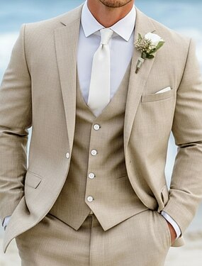 De los hombres Trajes de Lino boda en la playa Casual Blanco Verano Traje Ligeras Casual Color sólido Estándar Juego de 2 piezas Recto 1 botón