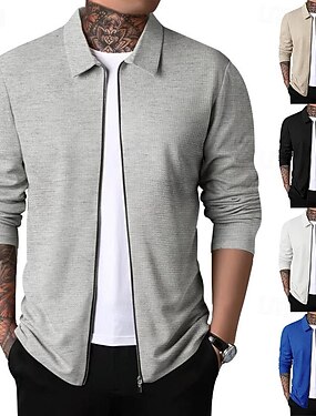 Hombre Chaqueta de camisa Chaqueta de transición Diario Transpirable Bolsillo Todas las Temporadas Plano Clásico Diseño Regular Tela de gofres Negro Blanco Azul Real Caqui Gris Ligero Chaquetas