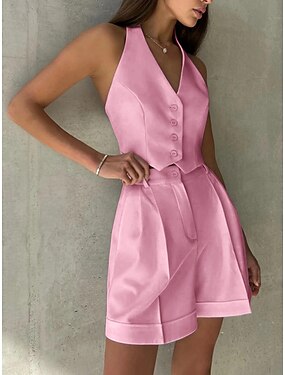 Mujer Normal Mono Activo Color sólido Sin Mangas Escote en U Botones Bolsillo Vacaciones Diario Ajuste regular Negro Blanco Azul Piscina Verano