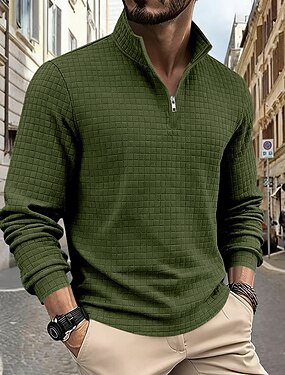 Hombre Camisetas polo con diseño de gofre Polo Vacaciones Calle Cremallera de un cuarto Manga Larga Moda Básico Color sólido Jacquard Primavera Otoño Ajuste regular Negro Blanco Vino Verde Ejército