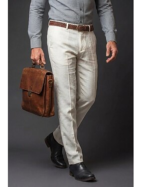 De los hombres Algodón Lino pantalones de traje Pantalones casuales Negocio Oficina Elegante Moda Formal Blanco Azul Marino Oscuro Beige Color sólido A Medida Largo Rígido