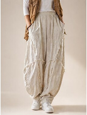 Mujer Pantalones de lino y algodón Chinos Pantalones de verano Ropa de calle Básico Casual Longitud total Media cintura Plano Correa Bolsillo Comodidad Rígido Diario Exterior Calle Arroz blanco PEC