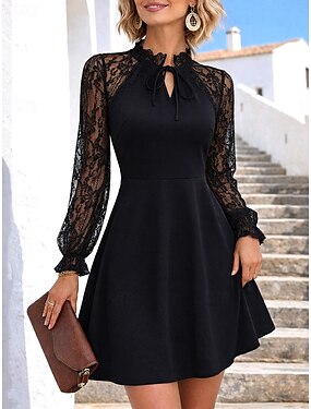 Mujer Mini vestido Vestido de encaje Vestido blanco Vestido de una línea Elegante Casual Diario Vacaciones Cita Ajuste regular Plano Manga Larga Cuello Barco Blanco Verano