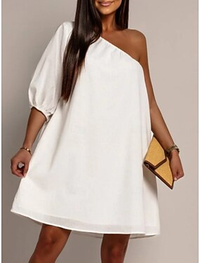Mujer Mini vestido Vestido blanco Vestido informal Elegante Moda Moderno Exterior Vacaciones Noche Holgado Plano Media Manga Un Hombro Blanco Verano Primavera
