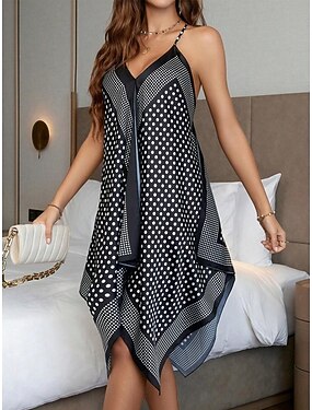 Mujer Vestido Midi Vestido bohemio Vestido informal Vestido lencero Elegante Moda Moderno Exterior Vacaciones Noche Ajuste regular A Lunares Sin Mangas Escote en Pico Negro Blanco Verano Primavera