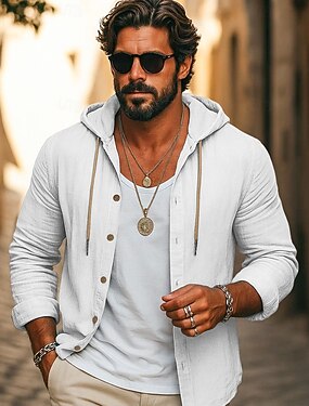 Hombre Camisa Camisa de lino Ropa de playa Abotonar la camisa Camisa con capucha Plano Vacaciones Casual Negro Blanco Azul Piscina Verde Trébol Manga Larga Con Capucha Otoño Primavera verano Ropa
