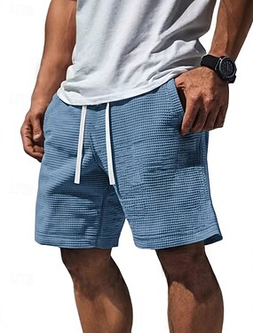 Hombre Pantalones cortos de gofres Pantalón corto Pantalones cortos casuales Bolsillo Cintura elástica Minimalista Textura Comodidad Transpirable Sobre la Rodilla Casual Exterior Playa Vacaciones Moda