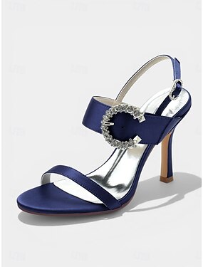 Zapatos de tacón con tira trasera de satén azul para mujer - zapatos de salón de punta fina con hebilla de cristal de estrás para cócteles, eventos nocturnos u ocasiones formales