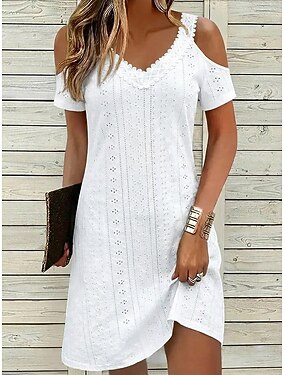 Mujer Blusa Ojal Color sólido Elegante Casual Manga Corta Cuello Camisero Tops regulares Diario Blanco Verano Primavera Otoño