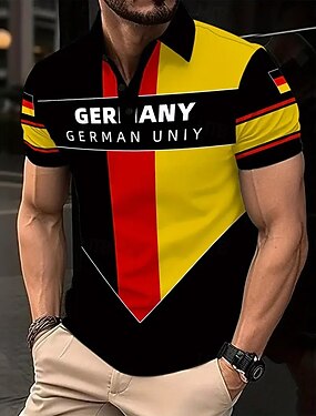 Hombre Bandera alemana Polo Manga Corta Camisas de polo Cuello Vuelto Casual / Diario Ropa Deportiva Botones Verano Negro