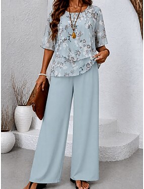Mujer Conjuntos de pantalones Media Manga Mariposa Escote Redondo Floral Graphic Elegante Vacaciones Casual Diario Playa Azul Piscina Amarillo Primavera verano Holgado
