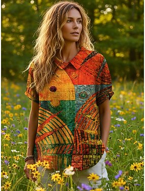 Mujer Blusa Botones Estampado Graphic Geométrico Vintage Elegante Casual Manga Corta Escote en Pico Tops largos Diario Azul Piscina Rosa Morado Naranja Verde Trébol Verano Primavera