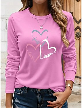 Camiseta de mujer de manga larga con cuello redondo túnica de manga larga gráfica de corazón vintage elegante redonda blusas regulares diarias estampado para salir fin de semana negro rosa azul caqui
