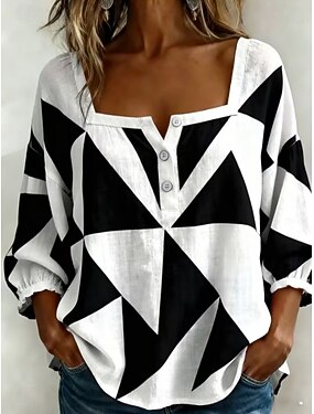 Mardi Gras Mujer Blusa Estampado Graphic Geométrico Abstracto Diario Elegante Casual Media Manga Escote Cuadrado Tops largos Casual Diario En blanco y negro Verano Primavera