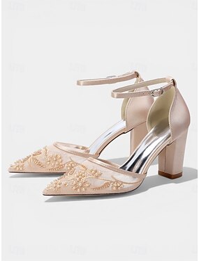 Zapatos de tacón de bloque bordados color champán para mujer: elegantes zapatos de cóctel para fiestas.
