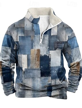 Hombre Bloque de color Estampado Sudadera con cremallera de un cuarto Sudadera de vacaciones Sudaderas Manga Larga Camisa de entrenamiento Media cremallera retro de la vendimia Print Festivos Noche