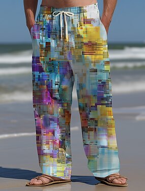 Hombre Bloque de color Retazos Arte abstracto Pantalones Pantalones casuales Pantalones anchos Media cintura Moda Hogar Exterior Vacaciones Cintura elástica con cordón Pantalones tipo lino con