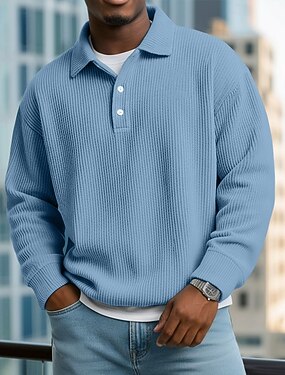 Hombre Camisetas polo con diseño de gofre Polo Casual Formal Cuello con banda Manga Larga Moda Color sólido Con Texturas Bloque de Color Botones Primavera Otoño Primavera & Otoño Ajuste regular Negro