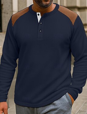 Hombre Camisa de gofres Camiseta Camiseta superior Camisas de hombre con coderas Manga Larga Bloque de color Moda Design Básico Cuello alto Henley Casual Vacaciones Calle Otoño Primavera & Otoño