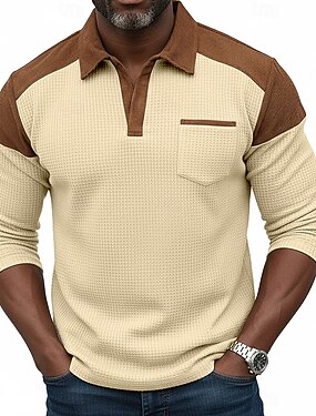 Hombre Camisetas polo con diseño de gofre Casual Calle Escote en Pico Cuello de gaviota Manga Larga Moda Básico Color sólido Bloque de Color Primavera & Otoño Otoño invierno Ajuste regular Negro Azul