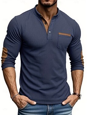 Hombre Camisa henley gofrada Tee Manga Larga Color sólido Plano Moda Design Moderno Bolsillo Bloque de Color Botones Henley Exterior Casual Diario Otoño Invierno Todas las Temporadas Azul Marino