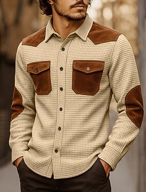 Hombre Camisa de Pana Con Texturas Casual Deportes Diseño Manga Larga Moda Básico Bloque de color 3 Piezas Cálido Otoño Primavera & Otoño Todas las Temporadas Ajuste regular 1# 2# 3# 4# 5# 6# Camisa