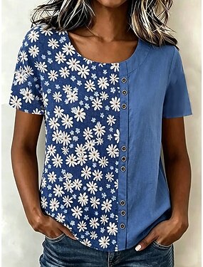 Mujer Camisa Blusa Lino de algodón sintético Estampado Floral Graphic Vintage Elegante Casual Sin Mangas Manga Corta Cuello Barco Tops regulares Diario Rosa Verano Primavera