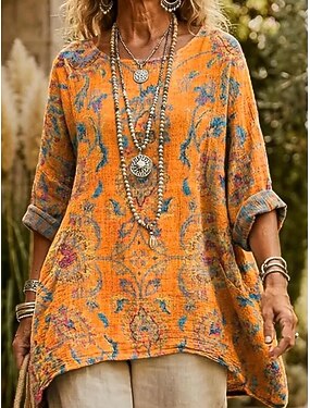 Mujer Blusa Estampado Floral Graphic Bohemia Diario Étnico Manga 3/4 Cuello Barco Escote Barco Tops largos Diario Festivos Ropa de vacaciones Naranja Verano Primavera
