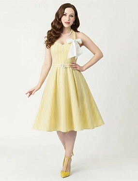 Rockabilly Mediodía Un vestido de línea Sin Mangas A Rayas Ajustado / Acampanado Disfraz Mujer Carnaval día de San Valentín Casual Reunión de Antiguos Alumnos Fiesta temática retro Adulto Vestido