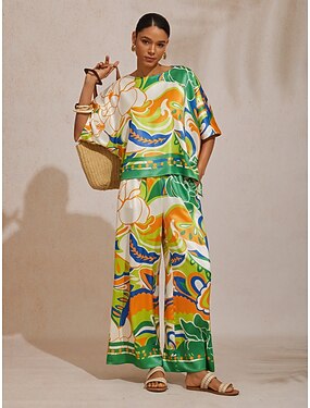 Mujer Conjuntos de dos piezas Conjuntos de pantalones Bolero Manga Larga Cuello Camisero Graphic A Lunares Estampado Diario Elegante Casual Diario Playa Morado Verde Trébol Beige Verano Ajuste regular