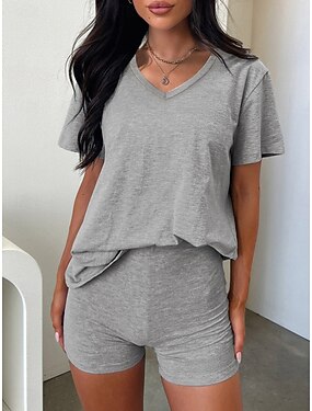 Mujer Conjuntos de pantalones Media Manga Escote en Pico Color sólido Moda Ropa de calle Casual Diario Exterior Azul Piscina Caqui Primavera verano Holgado