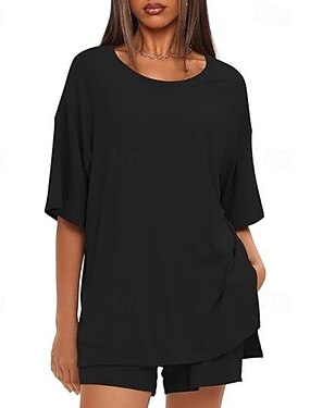 Mujer Conjuntos de dos piezas Conjuntos de pantalones cortos Manga Corta Escote Redondo Plano Moda Ropa de calle Casual Diario Exterior Negro Marrón Verano Ajuste regular