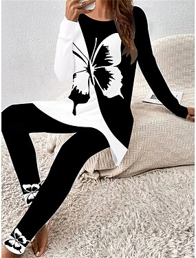 Mujer Conjuntos de pantalones Manga Larga Manga 3/4 Escote Redondo Graphic Geométrico Degradado Estampado Moda Ropa de calle Casual Diario Exterior Azul Marino Primavera verano Holgado