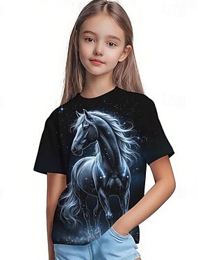 Chica 3D Animal Caballo Camiseta Manga Corta Impresión 3D Verano Primavera Activo Moda Estilo lindo Niños 3-12 años Exterior Diario Interior Ajuste regular