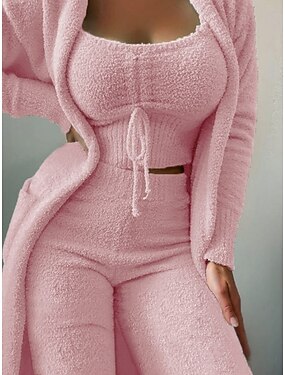 Mujer Conjuntos de pantalones Manga Larga Cuello Barco Plano Moda Ropa de calle Diario Casual Diario Negro Blanco Rosa Primavera Delgado