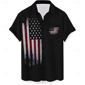 Hombre Bandera estadounidense Camisa de bolos Abotonar la camisa Manga Corta Hawaiano Casual Casual Ropa Deportiva Verano Primavera Cuello Vuelto Bolsillo Negro