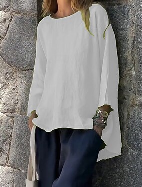Mujer Tops largos de algodón Top de algodón blanco Blusa de algodón blanca Lino de algodón sintético Botones Color sólido Moda Escote en Pico Diario Calle Azul Piscina Blanco Rosa Rojo Fucsia
