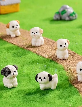 6 figuras decorativas de perro con cuentas de niebla, micropaisaje, simulación de perro, resina, pequeños adornos de animales, manualidades, adornos pequeños hechos a mano con cuentas, decoraciones