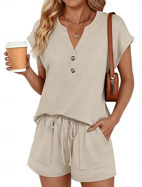 Mujer Conjuntos de pantalones cortos Manga Corta Escote Redondo Color sólido Moda Ropa de calle Casual Diario Exterior Negro Amarillo Vino Verano Holgado