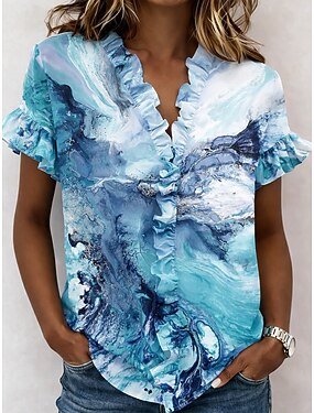 Mujer Camisa Sayo Volante Graphic Abstracto Elegante Moda Diario Manga Corta Escote en Pico Tops regulares Casual Diario Azul Piscina Rosa Morado Naranja Verde Trébol Verano Primavera